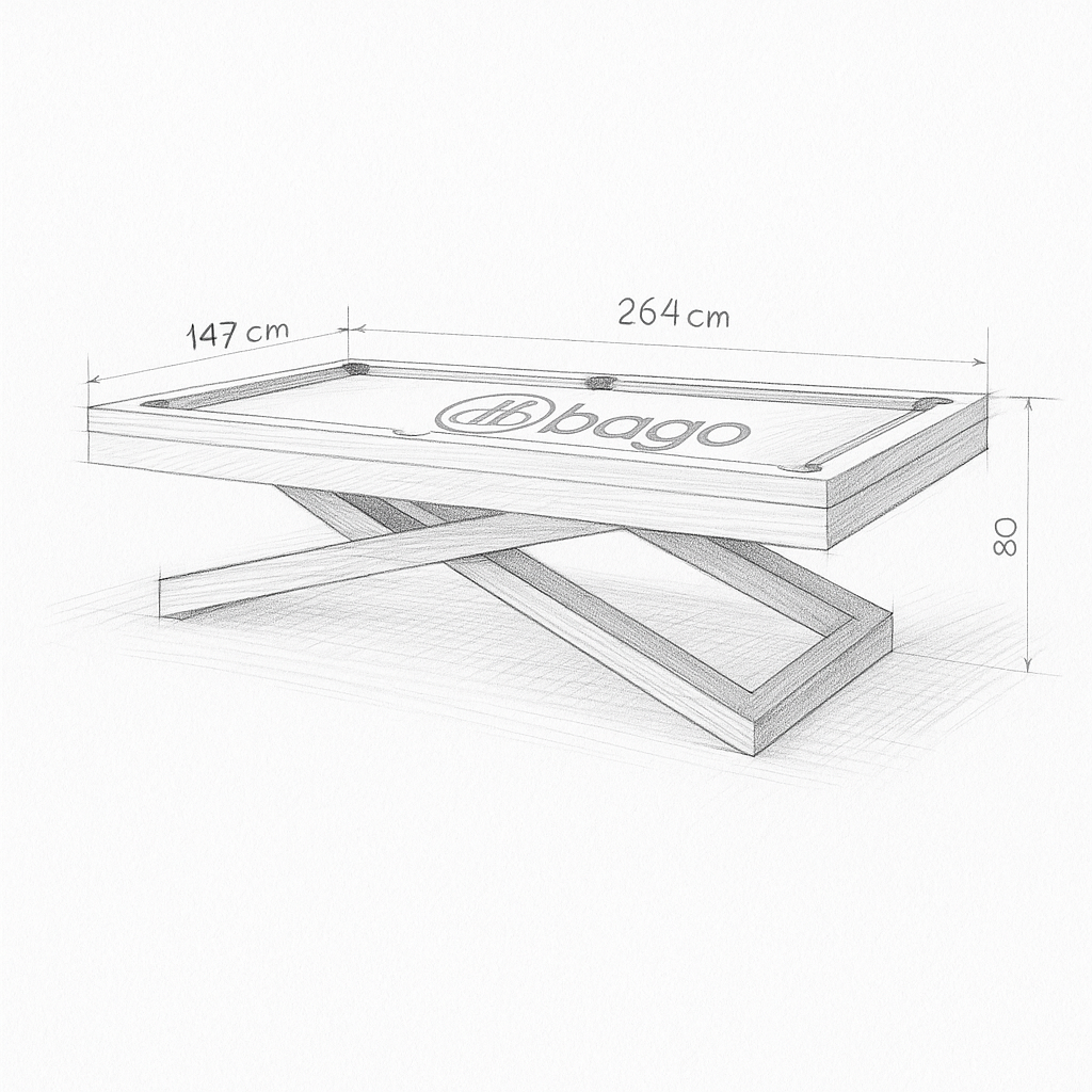 La mesa de billar Praga es una de nuestras piezas más exclusivas. Su estructura de parota y su base en forma de patas cruzadas le dan un carácter moderno y sofisticado que resalta en cualquier ambiente de alto nivel.