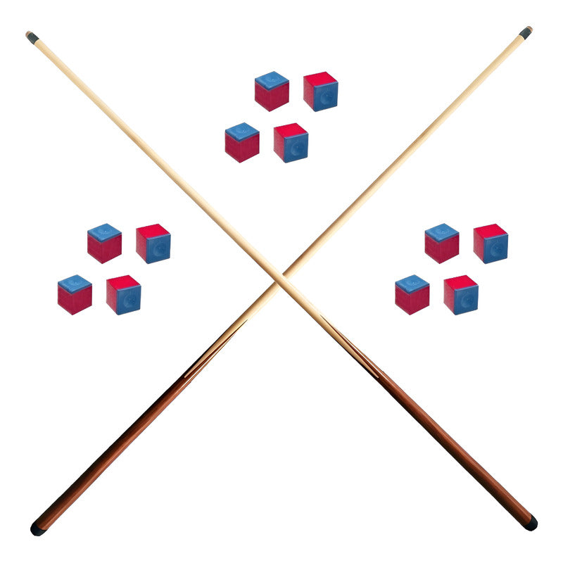 Resistencia, precisión y accesorios listos para el juego. Este set incluye dos tacos de uso rudo fabricados en maple y un paquete de tizas para mejorar el control en cada tiro.