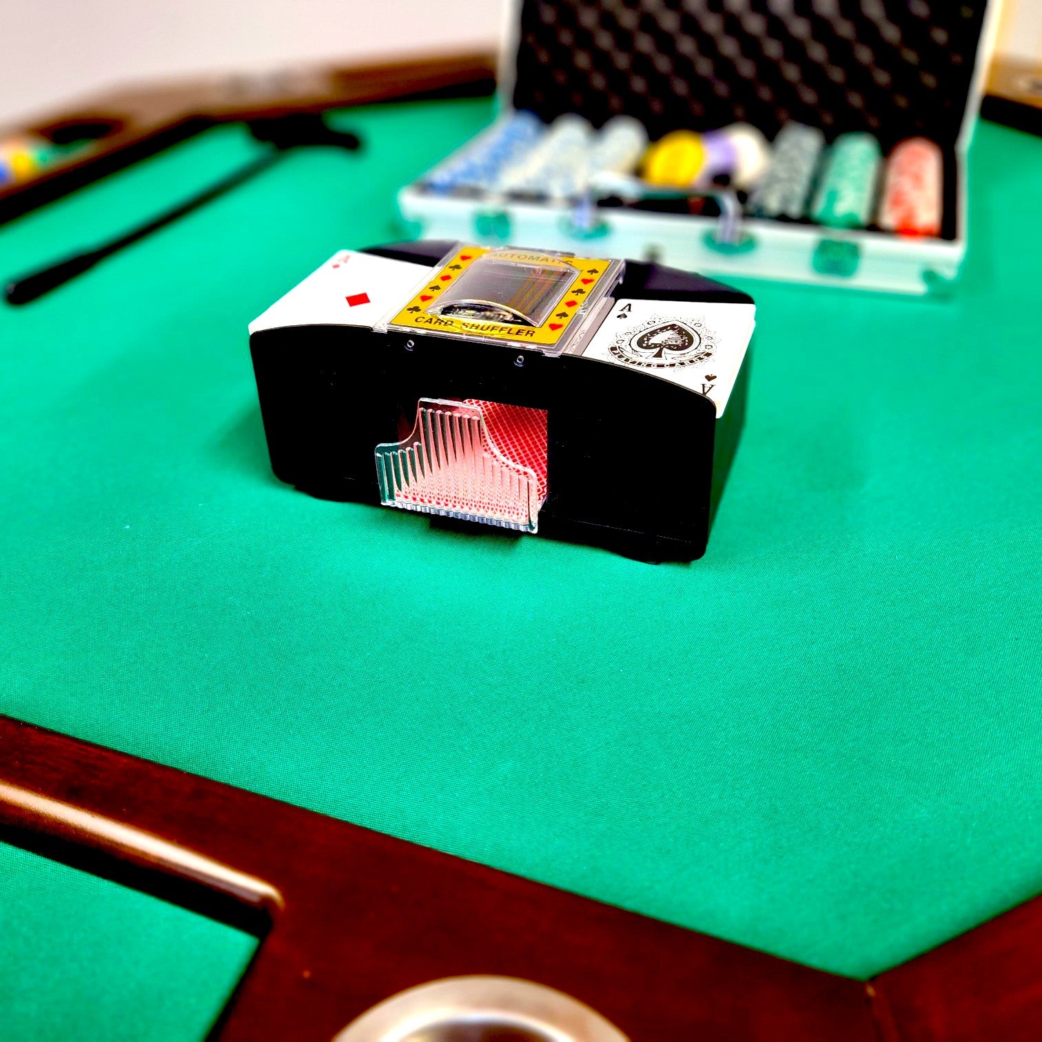Simplifica tus partidas con este práctico barajador automático. Funciona con solo presionar un botón, ideal para mezclar de forma rápida y pareja tus cartas de póker, uno o juegos de mesa.