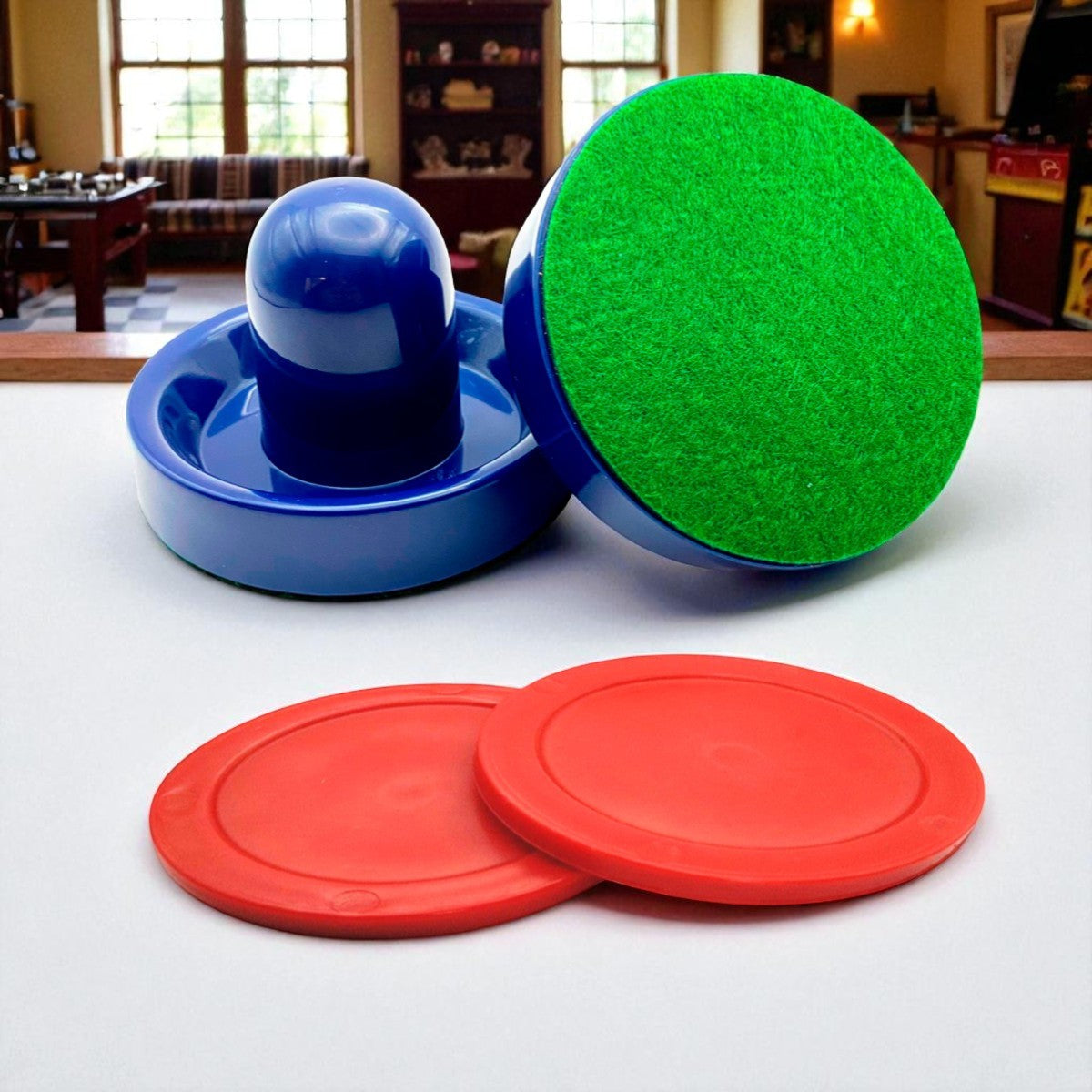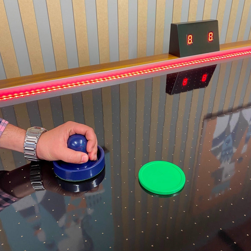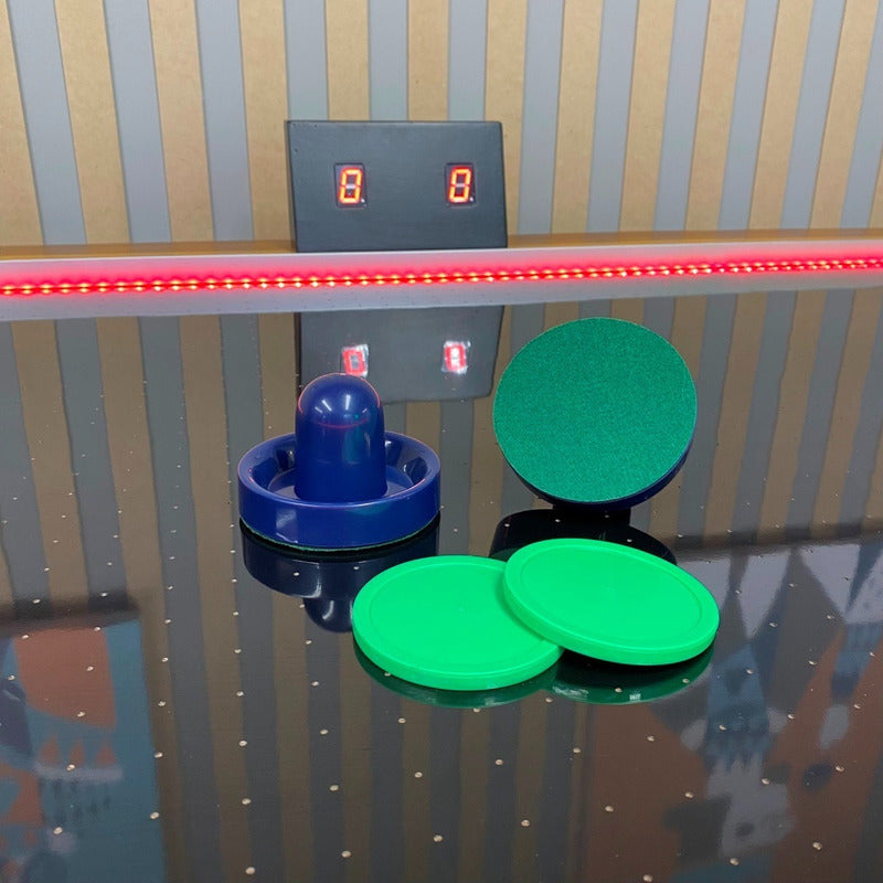 Accesorio esencial para cualquier mesa de Air Hockey. Compatible con mesas estándar, este set asegura partidas rápidas, suaves y llenas de diversión.